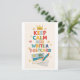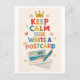 This is a postcard in the style of a paper cutout collage that says, "Keep calm and write a postcard."