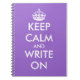 Keep calm and write on notebook | Customizable. Cute vintage gift idea for writers at home, school and office. Personalizable text and background color. ie purple. Create your own Keep calm and carry on slogan parody.