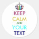 KEEP CALM and YOUR TEXT - customized background Classic Round Sticker