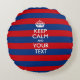 KEEP CALM AND Your Text on Blue Stripes Round Pillow