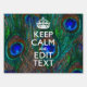 Your personalized Keep Calm saying on a fine custom colorful peacock feathers style decor. A personalized Keep Calm style saying on a one of a kind gift. Humorous or whimsical try on your creative words on two editable lines of text. Remember to use CAPITAL letters for best results.