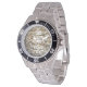 Has heft and feel of expensive stainless steel quartz watches. Good band with safety catch. I removed links, which is easy because engraved arrows show direction to push the linking pins. As always by this seller, the image (a railroad logo) is a perfect reproduction of my emailed image, and is precisely spaced and aligned.