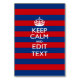 Have your personalized Keep Calm saying on this fine custom gift for yourself or for someone special on your list. Offered on a vibrant stylish red and blue horizontal stripes decor. Humorous or whimsical try on your creative words on the two editable text fields you see on this product page. Remember to use CAPITAL letters for best results.