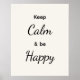 Keep Calm & Be Happy Black White Poster