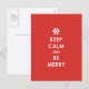 Keep Calm Be Merry Red Christmas Snowflake Holiday Postcard