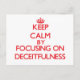 Use the search tool at my store to find other Deceitfulness merchandise. Keep Calm by focusing on Deceitfulness products available on tshirts,sweatshirts,kids shirts, infant onsies, stickers, magnets, and much more Deceitfulness clothing fully customizable to your specifications. If you like what you see, please link to my store (www.zazzle.com/shirtsforall) or email a friend..