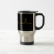 Keep Calm Call a School Psychologist Travel Mug in sharp gold lettering on black background. Design runs around the perimeter of the mug. Fun design but in a business-like, subtle tone. Plenty of room to personalize your mug with a name or initials. Makes a great gift for a school psychologist!