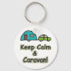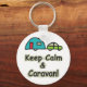 Keep Calm Caravan design features a caravan and car graphic with the words "Keep Calm & Caravan!" below. Fun image for caravanning enthusiasts.