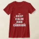 The Phrase "Keep Calm and Carrion" with two Carrion Crows perched on the letters "A" & "N" of the word Carrion, one flying above the the word Keep and on flying to the left of the words Keep & Calm. The background color can be changed when customizing, click Edit, then Background and choose your color.