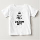 Make your own unique Keep Calm and Carry On quote with our easy to use baby shirt template. Tap 'personalize' to edit the text to any phrase you like. Tap 'customize futher' to adjust the crown and font color.