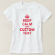 Make your own unique Keep Calm and Carry On quote with our easy to use shirt template. Tap 'personalize' to edit the text to any phrase you like. Tap 'customize futher' to adjust the crown and font color.