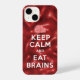 Zombie apocalypse? No problem! Based on the Keep Calm meme, phone case says "Keep Calm and Eat Brains." No crown, of course, but there's a brain -- with a bite missing! Funny for Halloween, or any time you need to call a friend to outrun the undead.