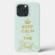 Fully customizable to any color - 'Keep Calm I'm The Bride' funny and popular internet meme quote in gold romantic curly calligraphy script and typography on a light pastel aqua background. A modern and trendy phone / ipad case design for wedding rehearsal / wedding party / bridal party / bachelorette party / wedding party and events.