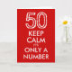 Keep calm it's only a number 50th Birthday greeting card. Funny Keep Calm and Carry On parody for 50 year old. Make your own age specific Keepcalm spoof with custom number. Cute fiftieth Birthday gag gift idea for men and women. Surprise your over the hill dad, mom, husband, wife, uncle, aunt, grandpa, grandma etc. Hilarious age joke for fifty Birthday celebration. Vintage slogan with custom background color.