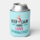 Funny Keep Calm and Love Gymnastics can cooler in beautiful teal. A cute gymnast humor postcard for a gymnastics coach or girl who loves tumbling in a pretty pink leotard.