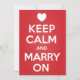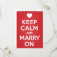 Keep Calm and Marry On mimics the popular keep calm and carry on design, but here is made for wedding invitations. A white heart sits in the place of the traditional crown above the text.
