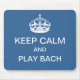"Keep calm and play Bach" All organists who play for church services will know the anguish when they have been playing the organ for half an hour already and STILL there is no sign of the bride - or the groom, or the vicar! Organists often even exchange stories of their longest organ play through of pieces before a service, and it is hard to not panic at the thought of going through the music yet again. The design has a blue background (this can be changed) and the famous crown with the words as in the WWII poster of the "Keep Calm and Carry on"... series.