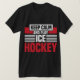 Hockey theme T-shirt with text of black, white, and red that reads Keep Calm And Play Ice Hockey!