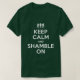 If you find yourself on the wrong side of the zombie apocalypse this fashionable t-shirt will remind you to "Keep Calm and Shamble On" in the face of your new undead lifestyle.