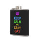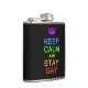 Well made flask, a little better than I had expected. Flask came in clear plastic box which gave it a nice presentation when I took it out of the zazzle packaging. Image is not printed on flask but on sticker. Don't know how this will hold up I haven't used it yet. This would make a Great gift! I plan to purchase more for friends! Cheers. I thought a little brighter than computer. Very crisp, writing wasn't