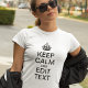 Use our easy to customize Keep Calm and Carry template to make your perfect t-shirt. All text can be personalized. Change it, re-size, move or delete - it's completely up to you. Make a classic!