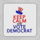 Keep Calm and Vote Democrat. A funny red, white, and blue democratic party patch for your liberal friends with the Uncle Sam political hat on top of this cute quote. Keep voting in the midterm and presidential elections for America.