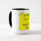 Keep Calm & WRITE On Mug, 15 oz, two tone (Black internally, Black externally). Perfect for Coffee or Tea, Hot Chocolate or Cocoa, for the WRITER, BLOGGER, AUTHOR in your Life. The word WRITE has a different kind of yellow from the taped post it note, to make it pop out and give it a grungy stylized look.