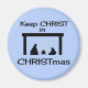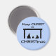 Very simple nativity scene, blue background, silhouette figures. Baby Jesus is accented with slight yellow beams of light. Keep CHRIST in CHRISTmas. Magnet is available in multiple sizes and shapes. Design is also available on other products in my store.