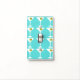 This Keep 'Em Coming Martini Light Switch Cover features a turquoise background and the tiled image of a white silhouette of a martini glass. Inside each glass is a glorious green olive with an orange pimento. This is a fun light switch cover for everyone who wishes they were a character in a classic movie. Shaken not stirred, please!
