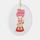 Lightweight, smooth, pure white ornament with nice sheen. Perfect size to be seen from across the room ... and to attract closer inspection! Price was great for ordering enough for the whole family! Clear, bold black design just as requested. Matches the order exactly. Just so nice!