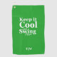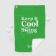 Keep your head cool in style with this playful golf-themed towel! Featuring the fun text "Keep it Cool and Swing" alongside a whimsical graphic of a bouncing golf ball, this towel is perfect for any golf enthusiast. Ideal for holidays, birthdays, retirements, or any special occasion, this towel makes a perfect gift.