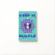 The central motif features an eye-catching layered heart in soothing shades of cyan, light blue, and purple, symbolizing a commitment to emotional well-being. This heart is positioned against a vibrant, textured background composed of alternating stripes of cyan/teal and deep purple, both overlaid with a subtle grid pattern. The powerful message "KEEP IT SIMPLE" is boldly written in contrasting cyan at the top and bottom. This design is perfect for anyone seeking a mindful approach to life, prioritizing emotional clarity and simplicity.