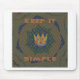The central motif showcases a symbolic blue and gold crown, representing focus and inner royalty. This crown is set against a dynamic, geometric background: a brown/taupe grid pattern overlaid with a radiating starburst in muted purples and creams. The powerful message "KEEP IT SIMPLE" boldly frames the top and bottom of the design. This elegant combination of clean geometry and motivational symbolism in a sophisticated brown shade is ideal for anyone seeking clarity and a mindful approach to their daily life with a warm, understated aesthetic.
