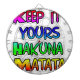 This artwork prominently features the phrase "KEEP IT YOURS HAKUNA MATATA" arranged in a stacked format. Each word is rendered in a distinct, vibrant color with a bold black outline, creating an eye-catching and cheerful design.