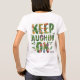 A fun and vibrant t-shirt design features the message "Keep Laughing On" in a playful, bouncy font. Each word bursts with a different bright color, sure to bring a smile to anyone who sees it.