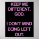 Keep Me Differentt God I Don't Mind Being Left Out Poster