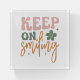 Brighten up your workspace with the Keep On Smiling Inspirational Quote Paperweight. This elegant and functional desk accessory is perfect for holding down your important papers while reminding you to stay positive and keep smiling throughout the day. Ideal as a thoughtful gift or a motivational addition to your own office décor.