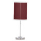 Table Lamp Brighten up any room with this custom table lamp from Lamp-In-A-Box. Personalize the lamp shade with original artwork, photography, or bold graphics to create a statement piece that will add instant style to your home decor. Choose your trim and base for a special, one-of-a kind home or office accent. Choose from film polyester, rice paper, or linen lamp shades Printed in vibrant color with fade resistant ink. Dimensions: 50.8cmh x 17.78cmw (with shade); 2 lbs 120 Volt; Up to 60-watt incandescent light bulb (light bulb not included) Includes a 6’ Power Cord with 2-prong USA plug and pull chain
