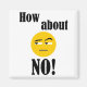 How about No! with a solid color smiley face in yellow and text in black, Makes and awesome gift for that special someone in your life. Spread a little humor!