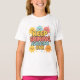 🎨 Designed in a fun cartoon style with bright yellow, aqua blue, orange, and coral tones, it looks amazing on a classic white tee.