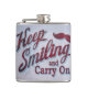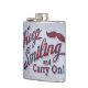 Well made flask, a little better than I had expected. Flask came in clear plastic box which gave it a nice presentation when I took it out of the zazzle packaging. Image is not printed on flask but on sticker. Don't know how this will hold up I haven't used it yet. This would make a Great gift! I plan to purchase more for friends! Cheers. I thought a little brighter than computer. Very crisp, writing wasn't