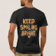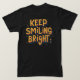 This vibrant t-shirt design features the phrase "Keep Smiling Bright" in a playful, colorful font. The design is perfect for anyone who wants to spread positivity and good vibes.
