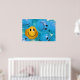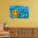 An Inspirational poster depicting a smiling yellow ball in a sea of frowning blue balls and representing the importance of keeping a sense of optimism and humour.