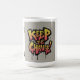 A vibrant and colorful mug design featuring the text "Keep the Change" in a bold, eye-catching font. The text is displayed in a variety of colors and patterns, making it a fun and playful addition to any kitchen or tabletop.
