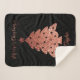 Keep warm this winter using this Christmas tree Sherpa blanket. Set upon a black background, there is a faux pink foil Christmas tree in the center with "Merry Christmas" written in cursive with your name at the bottom. Place your order for a personalized blanket today!