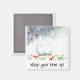 A fridge magnet with a watercolour painting of a goose, battling through a storm and the words, 'Keep your chin up!' A perfect reminder in hard times!