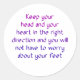 You know you're on the right path if you follow these directions: "Keep your head and your heart in the right direction and you will not have to worry about your feet." Great graduation gift!