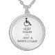 The image shows a graph of a person using a wheelchair, with text above and below it. The above text reads "KEEP CALM" (keep calm), and the text below reads "IT’S JUST A WHEELCHAIR" (it's just a wheelchair). This image seems to convey the message that there is no reason for alarm or discomfort, and that the presence of wheelchairs should be viewed with naturalness. The image shows a graphic of a person using a wheelchair with text above and below it. The text above reads "KEEP CALM," and the text below reads "IT’S JUST A WHEELCHAIR." This image appears to promote calmness and normalize the presence of wheelchairs in society.