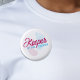 Hot pink and blue footprint keeper of the gender button for a baby shower / gender reveal party.