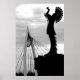 black and white photograph of the Keeper of the Plains sculpture in Wichita, KS